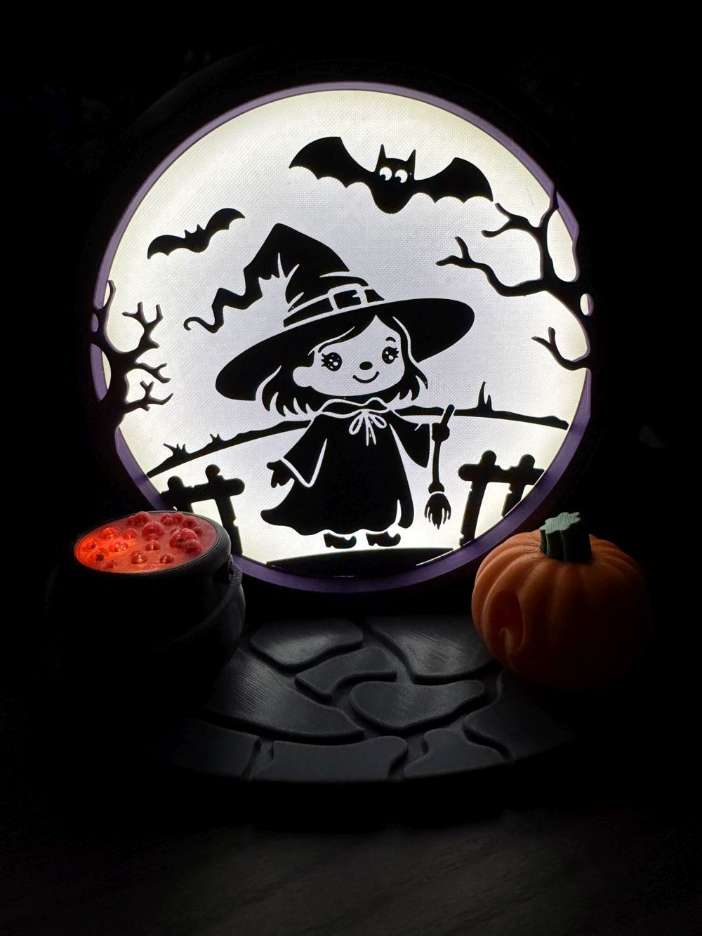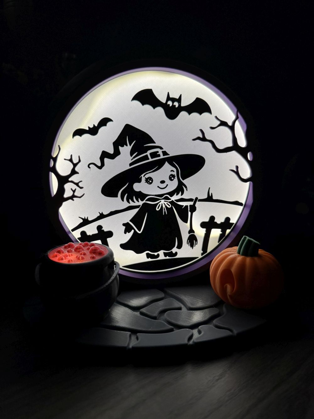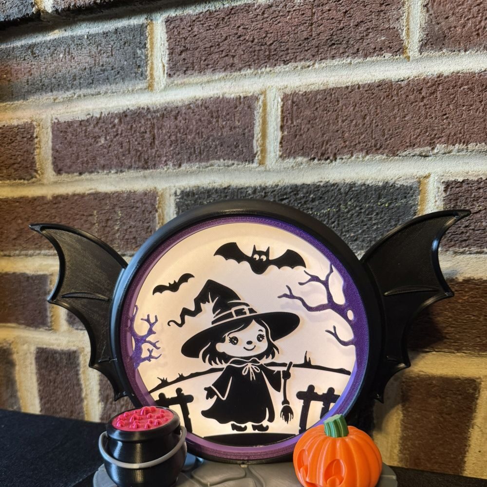 Designed by PA1 Maker and crafted with high-quality 3D printing, this LED light box makes a unique decoration for shelves, desks, or spooky nooks. The soft backlight creates a cozy glow at night, while the bold details stand out beautifully during the day.