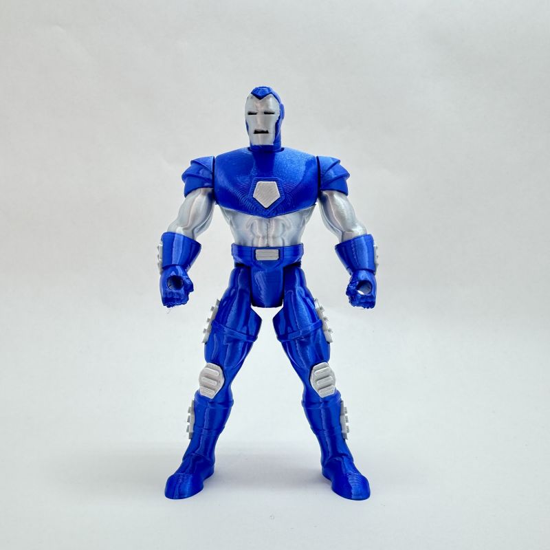 Bring classic 90s Marvel animation to your shelf with this Iron Man action figure inspired by The Animated Series (1994). This figure captures the bold proportions and clean lines of the original cartoon while using modern 3D printing for accuracy and durability.