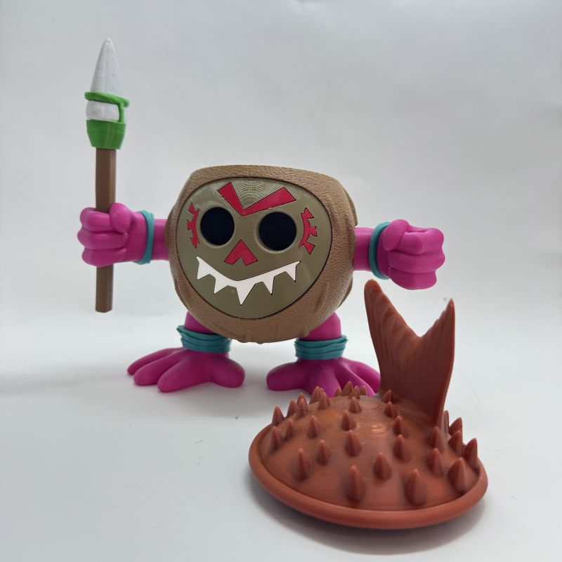 This Kakamora figure container brings the mischievous coconut warriors from Moana into bold 3D printed collectible form — with a functional twist.