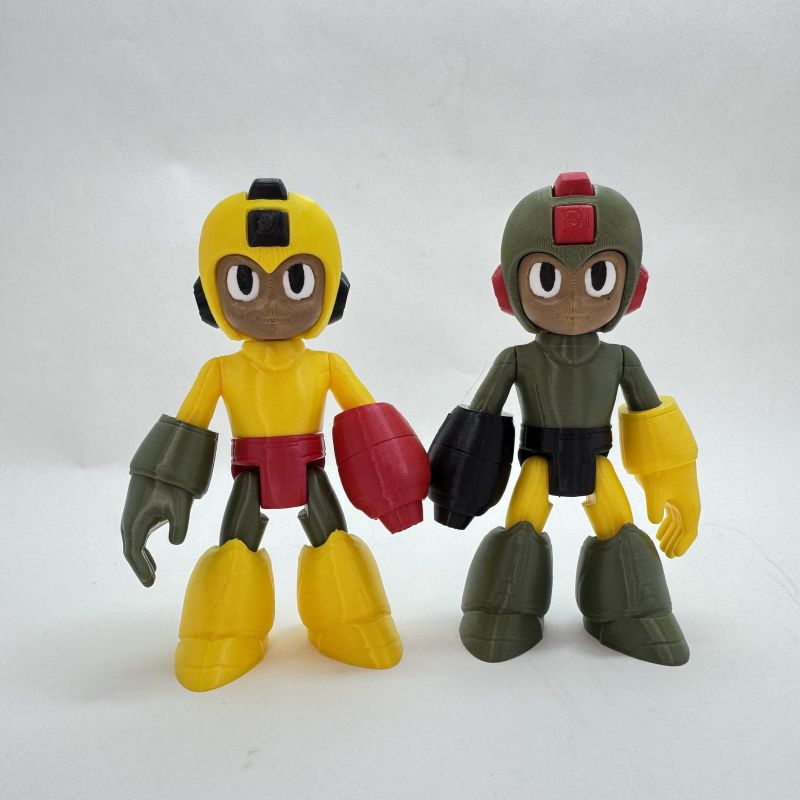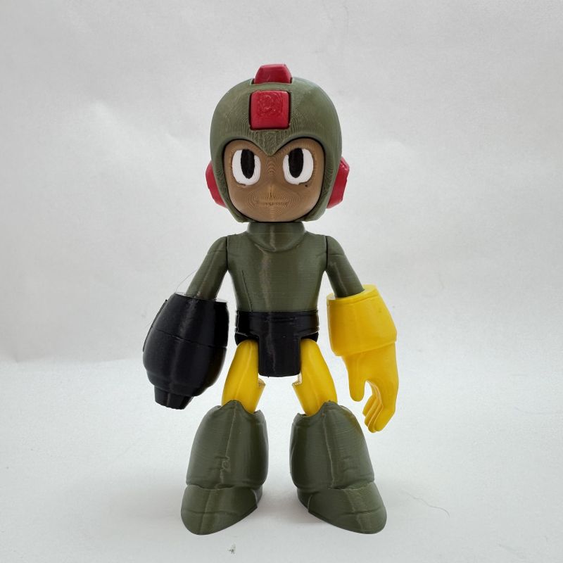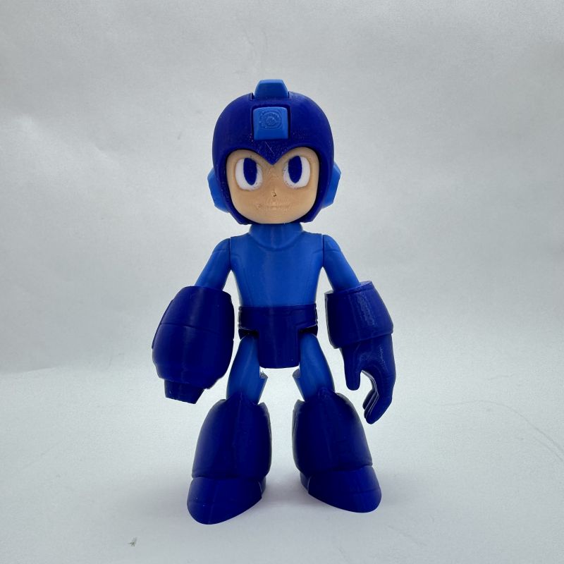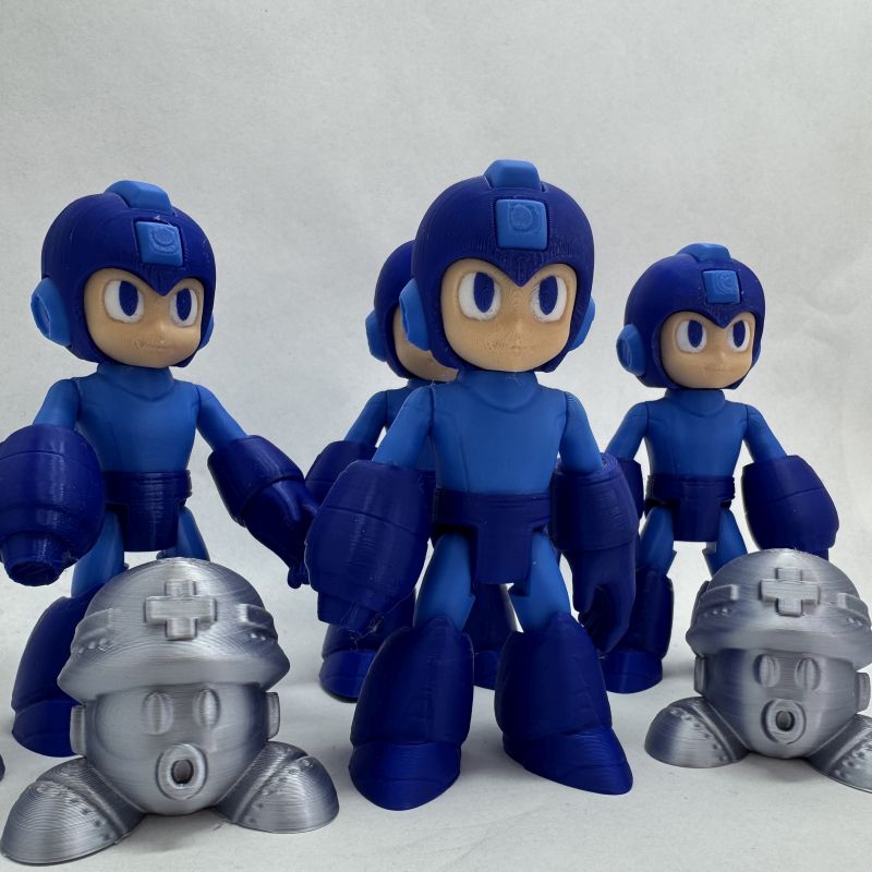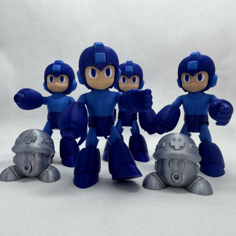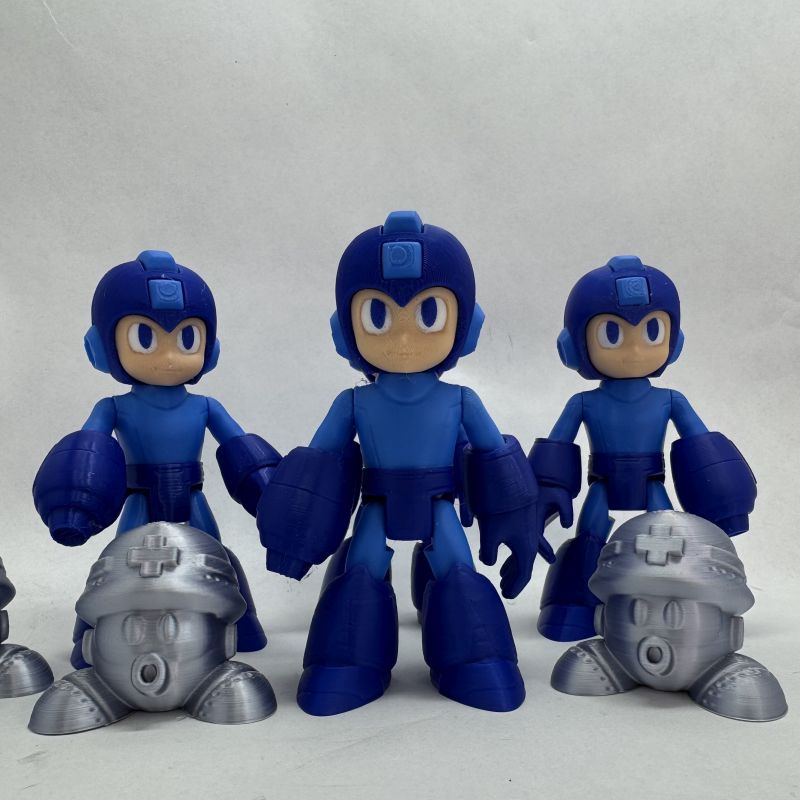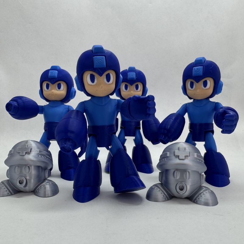 Poseable Mega Man action figure inspired by the classic NES hero. 3D printed, hand assembled, and customizable with optional Met companion. A must-have collectible for retro gaming fans.